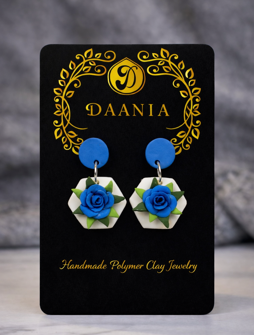 Serene Bloom is a delicate blend of calm tones and floral beauty. Handcrafted from polymer clay, these earrings feature a graceful blue rose set against a soft, light base with fresh green leaves, creating a peaceful, elegant look. Lightweight and easy to wear, they add a subtle statement of charm and sophistication — perfect for those who love gentle colors and timeless floral designs.